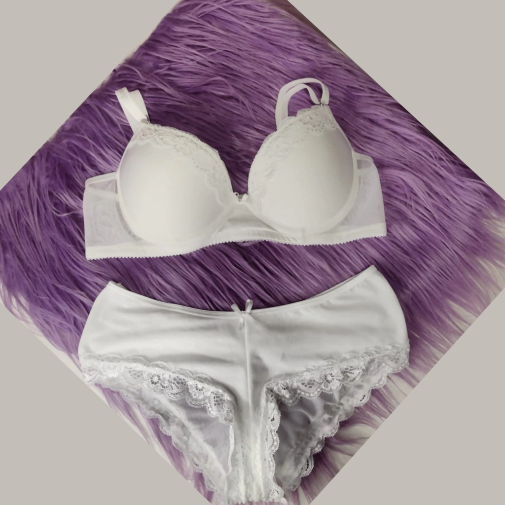 ONJUNTO TAZA SOFT C PUSH MICROFIBRA Y ENCAJE CON CULOTTE EN TUL ELASTIZADO Y PUNTILLA